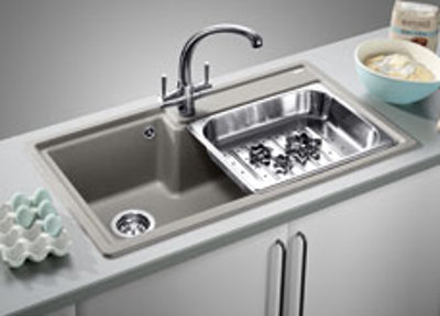 Decription: With 3½" basket strainer waste and overflow Bowl depth: 210mm Cabinet width minimum: 90cm Cut out size: 840 x 480 x 15R Sink Pack Price Includes BlancoCleo Tap